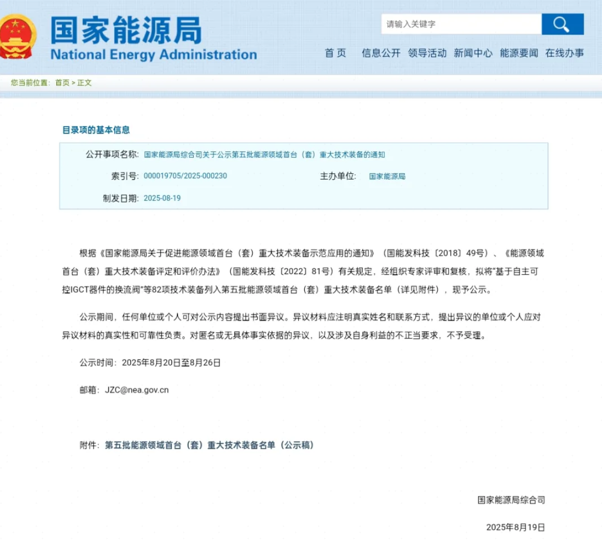 喜報 | 入選第五批能源領域首臺(套)重大技術裝備名單